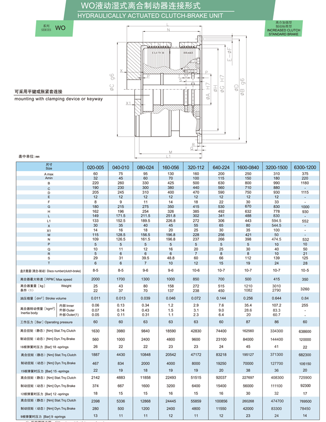 WO系列是一種組合式離合器/制動裝置,采用燒結(jié)青銅摩擦材料油驅(qū)動。它通常用于接合和制動任何工業(yè)機(jī)器(偏心壓力機(jī)、關(guān)節(jié)壓力機(jī)、金屬沖壓、封邊機(jī)、沖床、深沖壓力機(jī)、機(jī)械剪切機(jī)、熱鍛等)。它是要求高性能和最大可靠性的機(jī)器的理想產(chǎn)品。