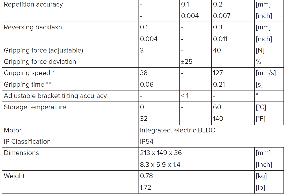 Onrobot是全球領(lǐng)先的電動(dòng)夾爪生產(chǎn)廠家,公司為全球協(xié)作機(jī)器人-Universal Robot 研發(fā)即插即用的電動(dòng)夾爪,所有產(chǎn)品均取得了UR+認(rèn)證。主要產(chǎn)品有RG2和RG6,是和Universal Robot配合度最好的自適應(yīng)電動(dòng)夾爪系列,所有夾爪安裝方便,編程簡(jiǎn)單,靈活使用,安全等級(jí)高,是UR機(jī)器人真正的得力“助手. RG2,GR6電動(dòng)手爪主要獨(dú)特特點(diǎn): 1.被爪物體絕對(duì)寬度值實(shí)時(shí)讀取和反饋; 2.夾爪可以安裝在空間0~180度范圍內(nèi)任意30°分度上,單雙夾爪均可; 3.可以自動(dòng)計(jì)算抓取負(fù)載值,而且夾取力實(shí)時(shí)反饋,可以自動(dòng)計(jì)算抓取工具中心點(diǎn); 4.抓取有效與否實(shí)時(shí)反饋; 7.帶深度反饋功能,平面上抓取工件編程簡(jiǎn)單; 5.支持UR3上無(wú)限循環(huán)使用; 9.UR+認(rèn)證及與UR機(jī)器人外形適配性強(qiáng)。